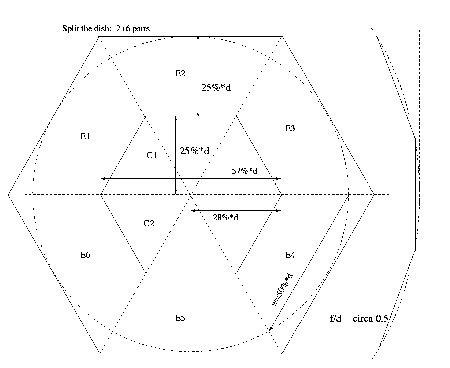 Full dish split to 1+6 parts: