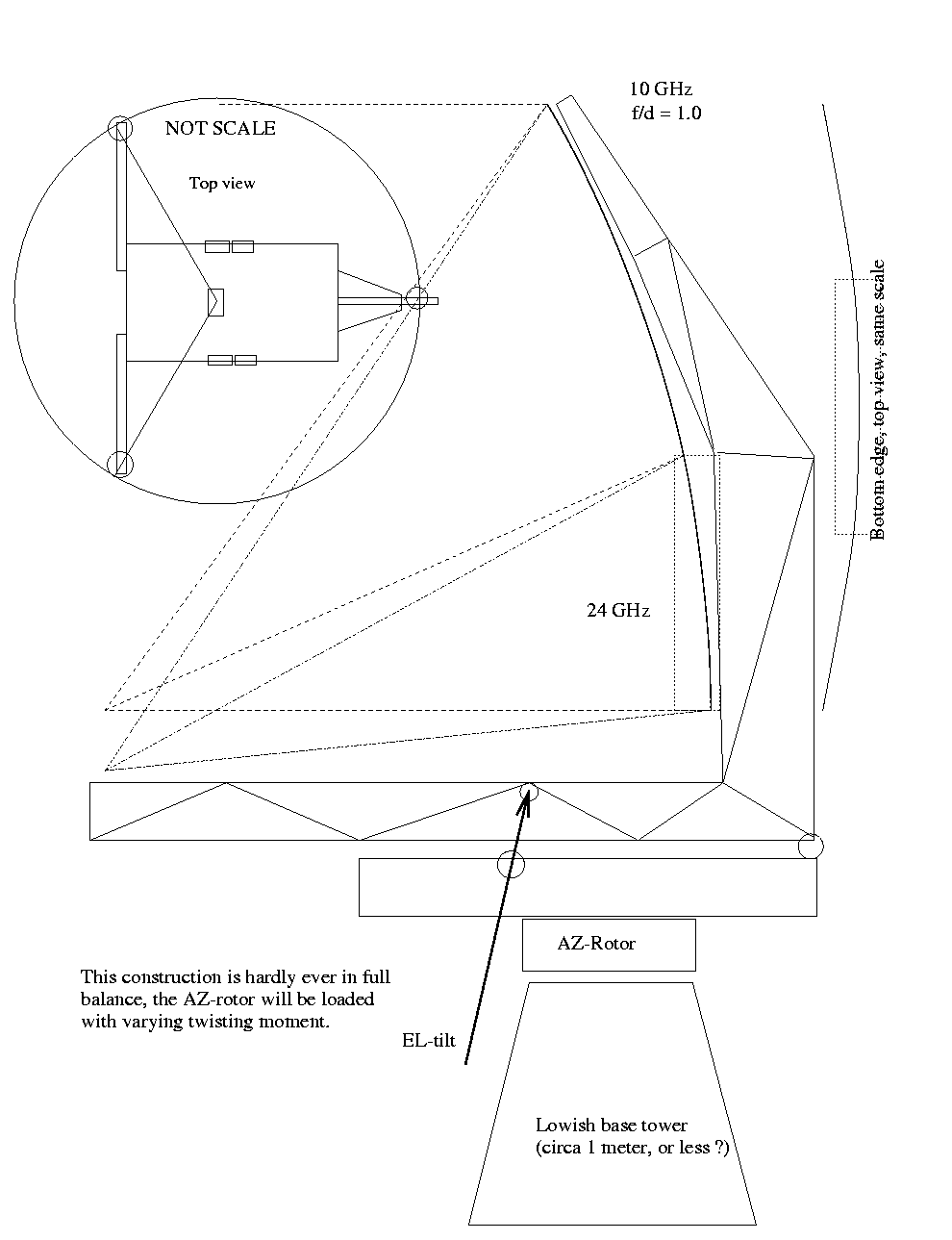 - Dish should possibly be letting wind thru (e.g. a fine mesh for the reflector surface -- but that is mechanically sensitive..)